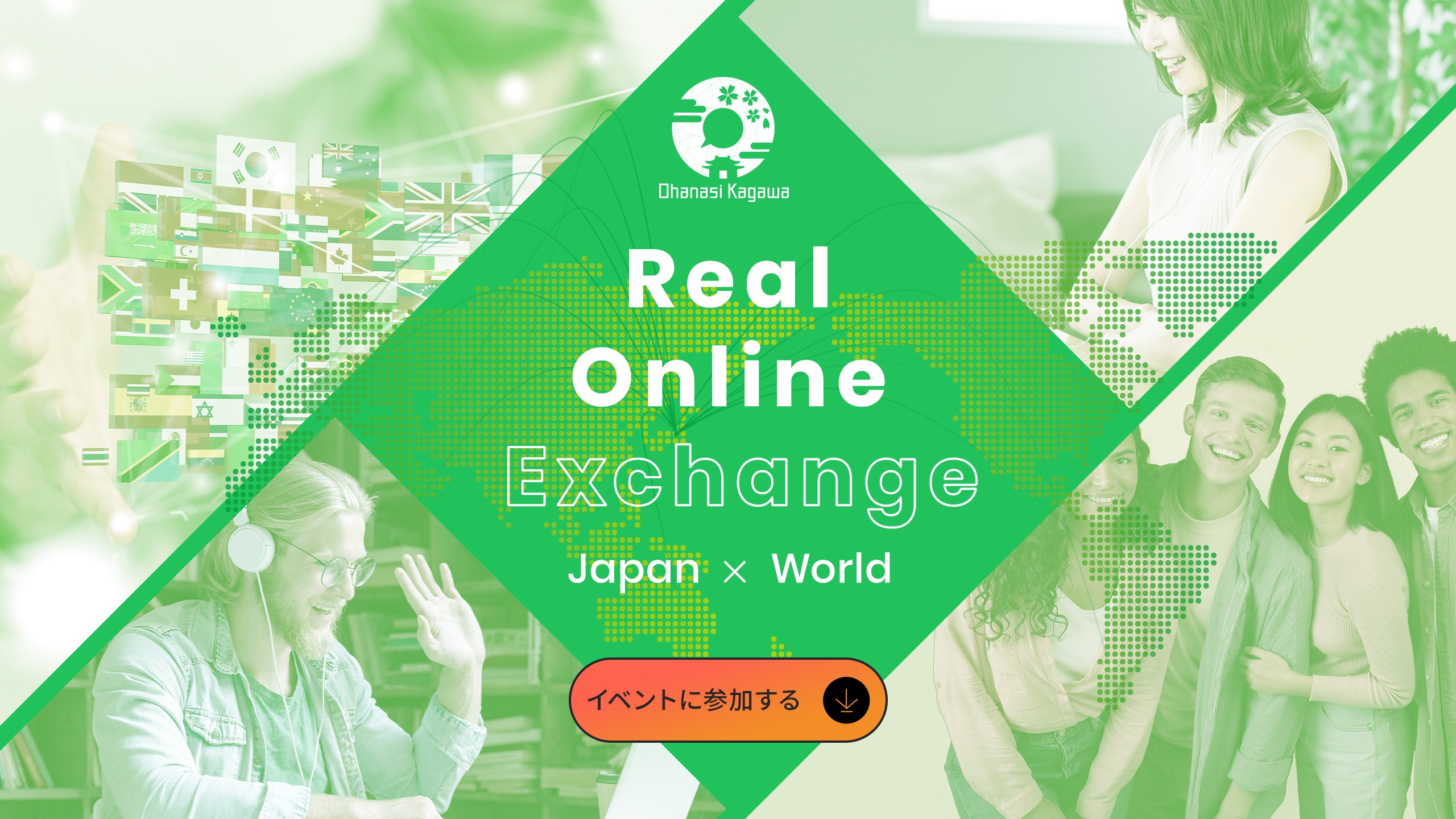 Ohanasi Kagawaでは、⽇本と世界中の⼈々が気軽に安⼼してつながれる世界を⽬指して週末に1対1形式で⽇本語と英語を使ったオンラインイベントを開いています。